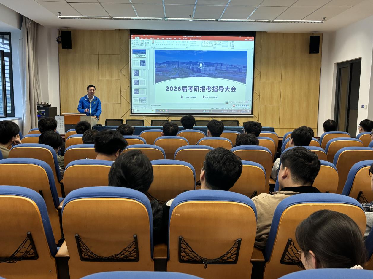 此次考研报考指导大会的召开,汇集了学院领导、老师的经验智慧与学长学姐的实战心得,从数据支撑、目标定位、调剂规划、备考实操到志愿选择,为学子们提供了全方位、立体化的指导,有效破解了正式报名期间的择校迷茫与复习困惑。学院始终高度重视学生升学发展,此次考研报考指导大会是学院“精准服务考研学子”系列举措的重要一环。未来,机械工程学院将持续聚焦学子需求,陆续推出复试指导、经验分享会、专业课咨询等帮扶活动,全程为学子们的考研之路保驾护航,助力更多学子圆梦理想院校。