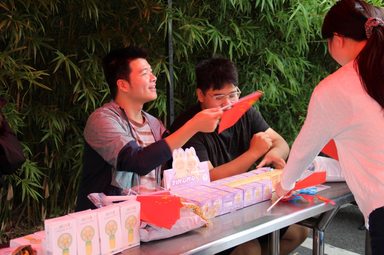 “欢庆国庆,知识竞猜”环节趣味与知识兼具。工作人员准备了涵盖中国历史文化、政治经济及国庆知识的选择、判断题卡。“中国抗日胜利是哪一年”“公有制是社会主义经济制度吗”等题目引发同学们的积极作答。答对者不仅获得了桌面摆件与盲盒,还在答题中深化了对祖国历史成就与时代发展的认知。