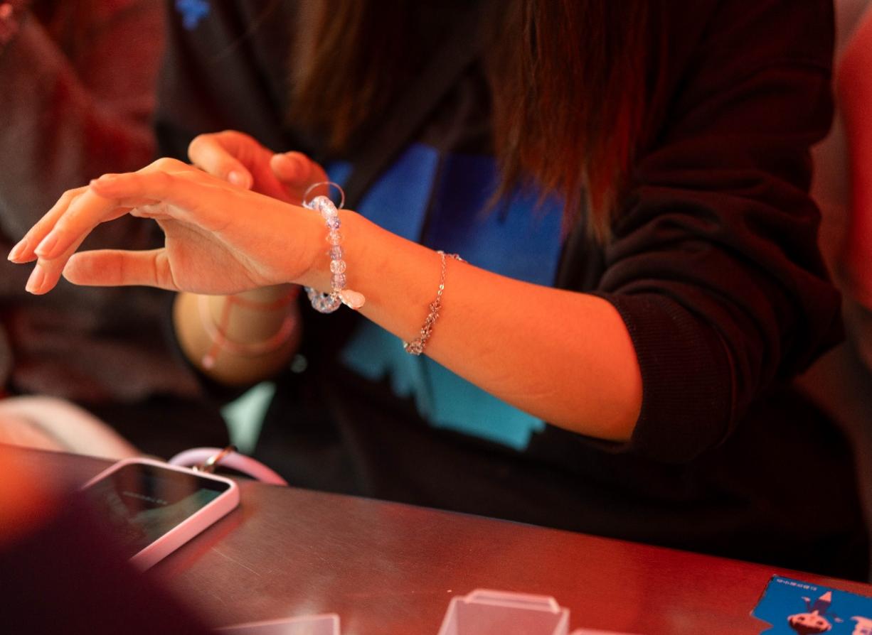 在温馨治愈的腕间冬韵手作活动中,大家自由搭配装饰,将红玛瑙、白水晶等饰品材料与可爱配件相结合,将冬日静谧与暖冬期盼融入手串设计。大家专注地穿线、搭配、固定,将对暖冬的期盼、对生活的热爱都融入到手串的每个细节中。