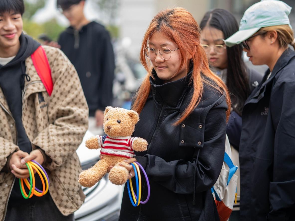 在立冬民俗套圈区域,琳琅满目的盲盒与玩具瞬间点燃了同学们的参与热情。他们手持套圈,瞄准目标,现场欢呼与欢笑交织,运气与默契碰撞让冬日氛围愈发鲜活。