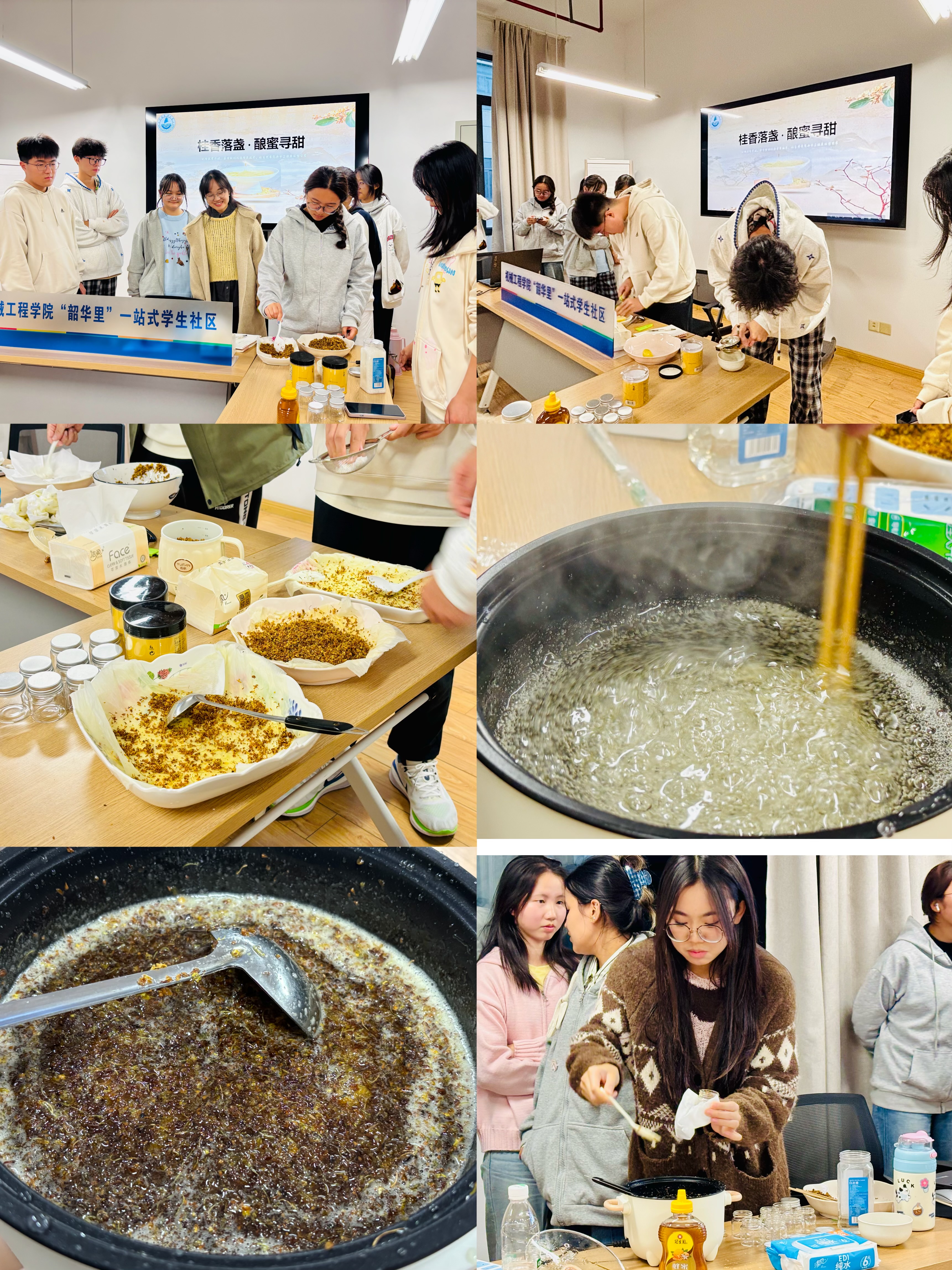 这场充满烟火气与仪式感的活动,让同学们在沉浸式手作中暂时卸下疲惫。大家不仅收获了亲手制作的桂花蜜,更在分工协作中增进了彼此的交流,在慢节奏的创作里感受生活暖意。活动以贴近生活的形式,将心理疏导融入实践体验,为初冬校园增添了温暖底色,也帮助学生在互动中汲取积极能量,以更平和的心态面对未来的学习与生活。