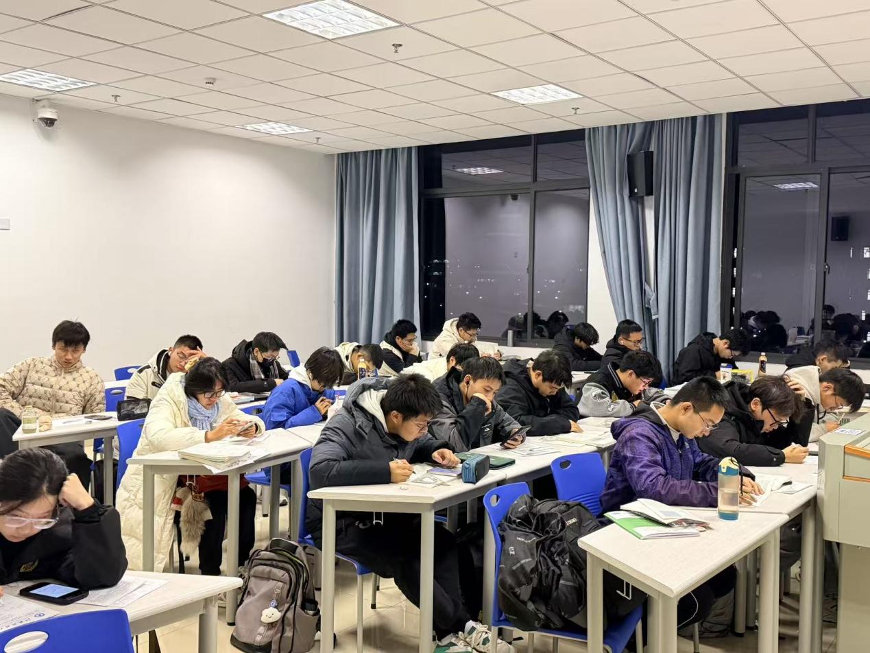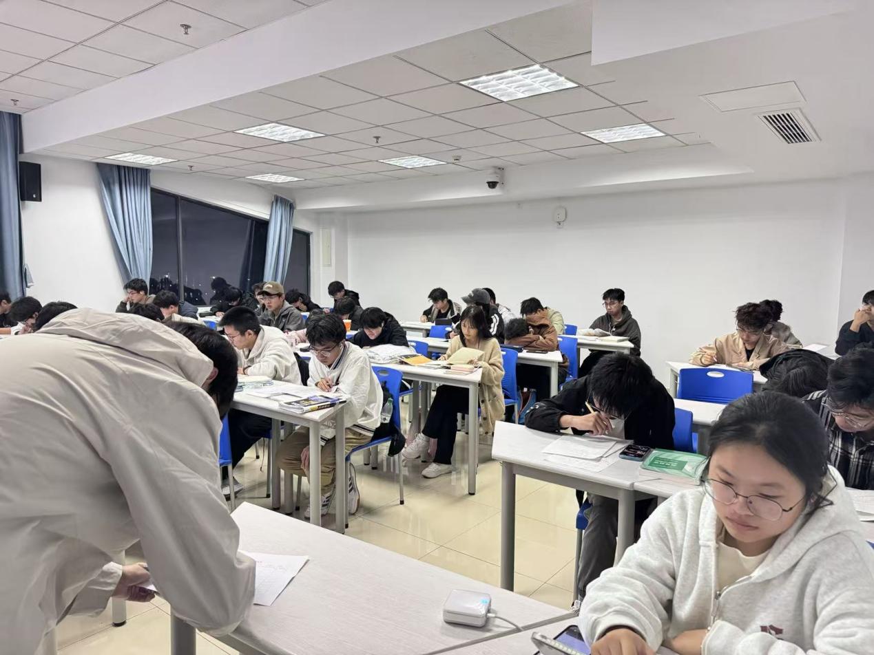 从检查的整体情况来看,晚自习秩序井然,情况良好。绝大多数同学能够准时到达自习教室,并迅速进入学习状态。教室里安静无声,同学们或专心致志地演算习题,或聚精会神地阅读专业书籍,展现了勤奋好学、积极向上的精神风貌。整个自习室充满了浓厚而踏实的学习气息。