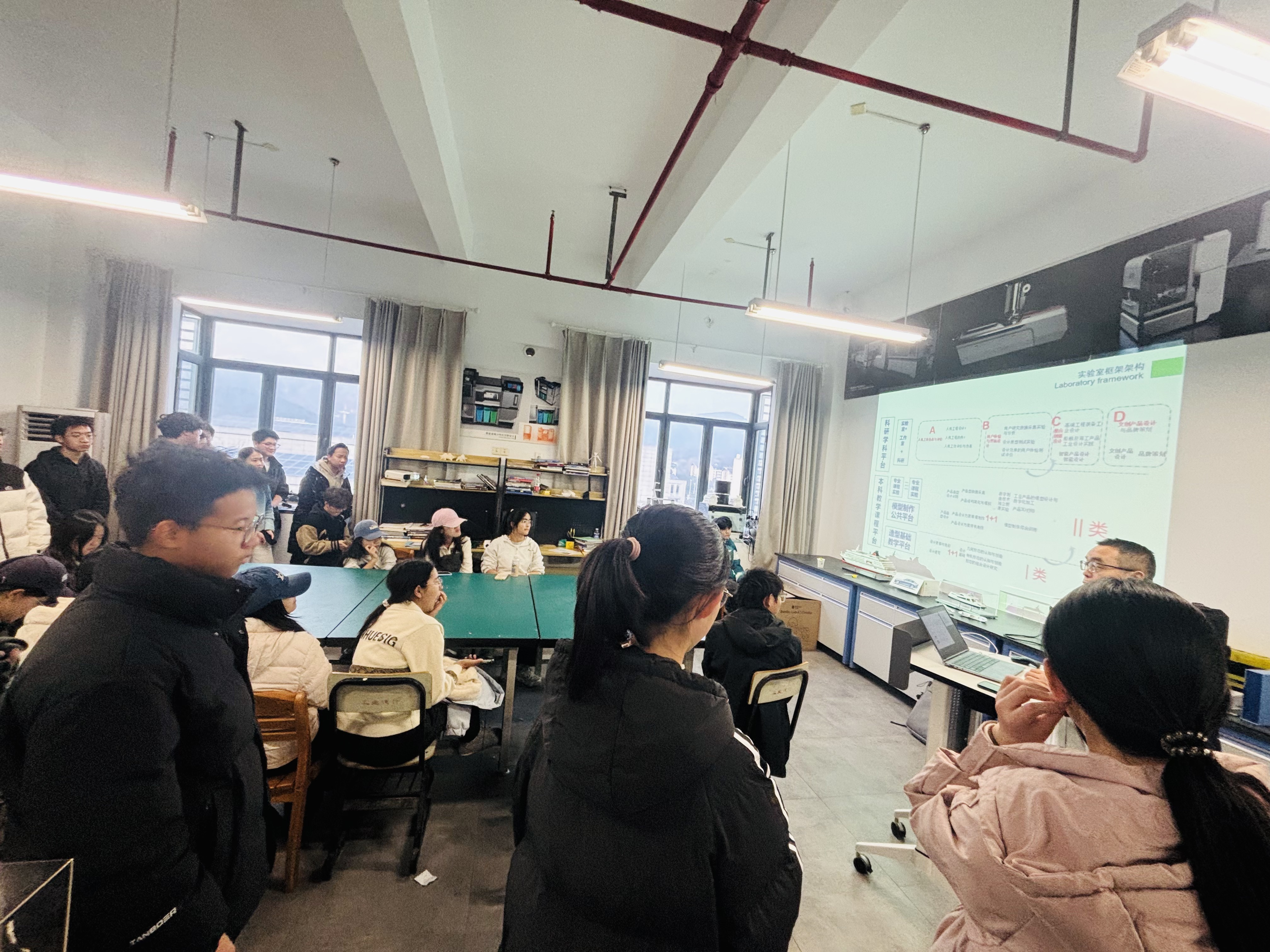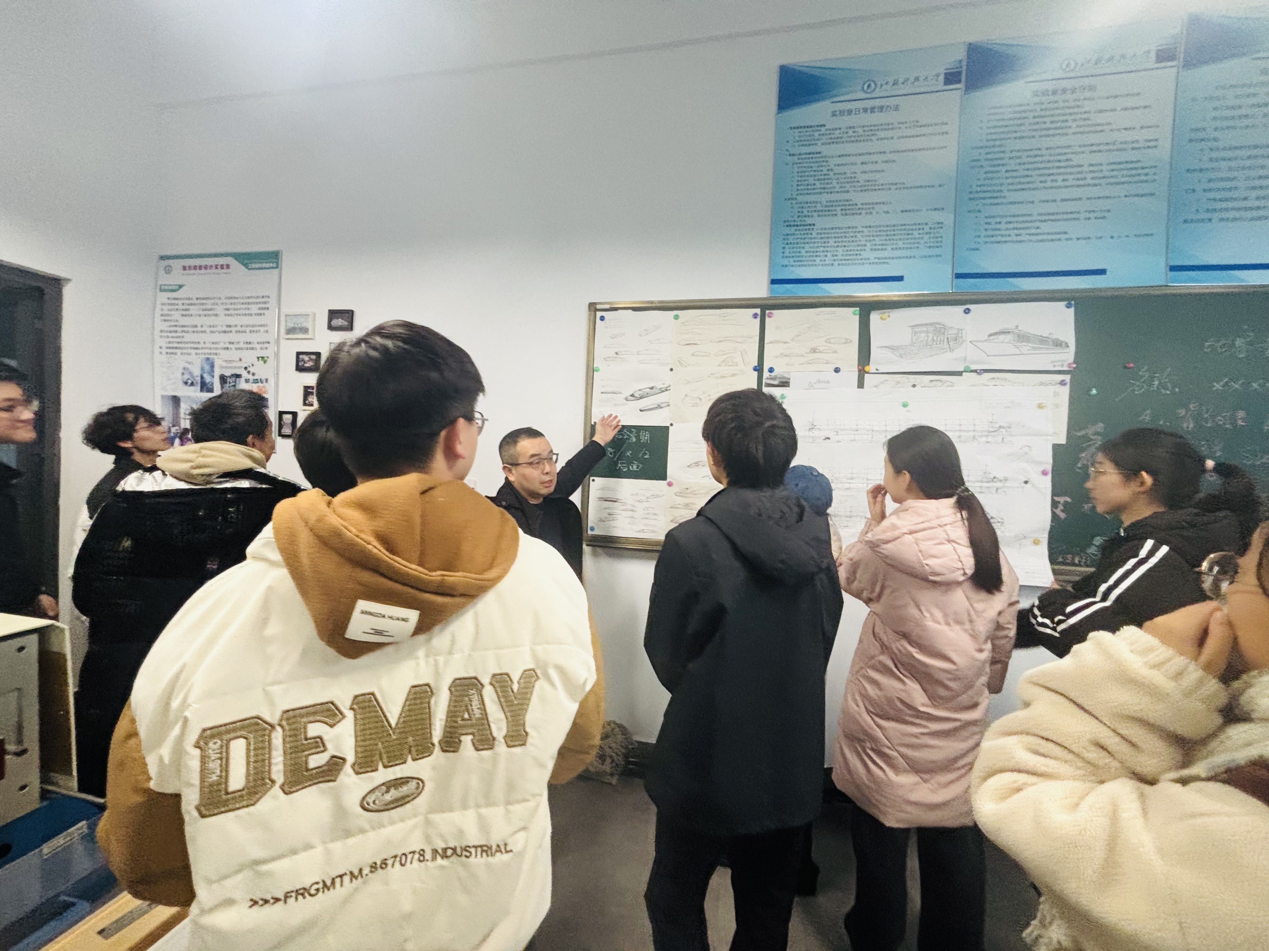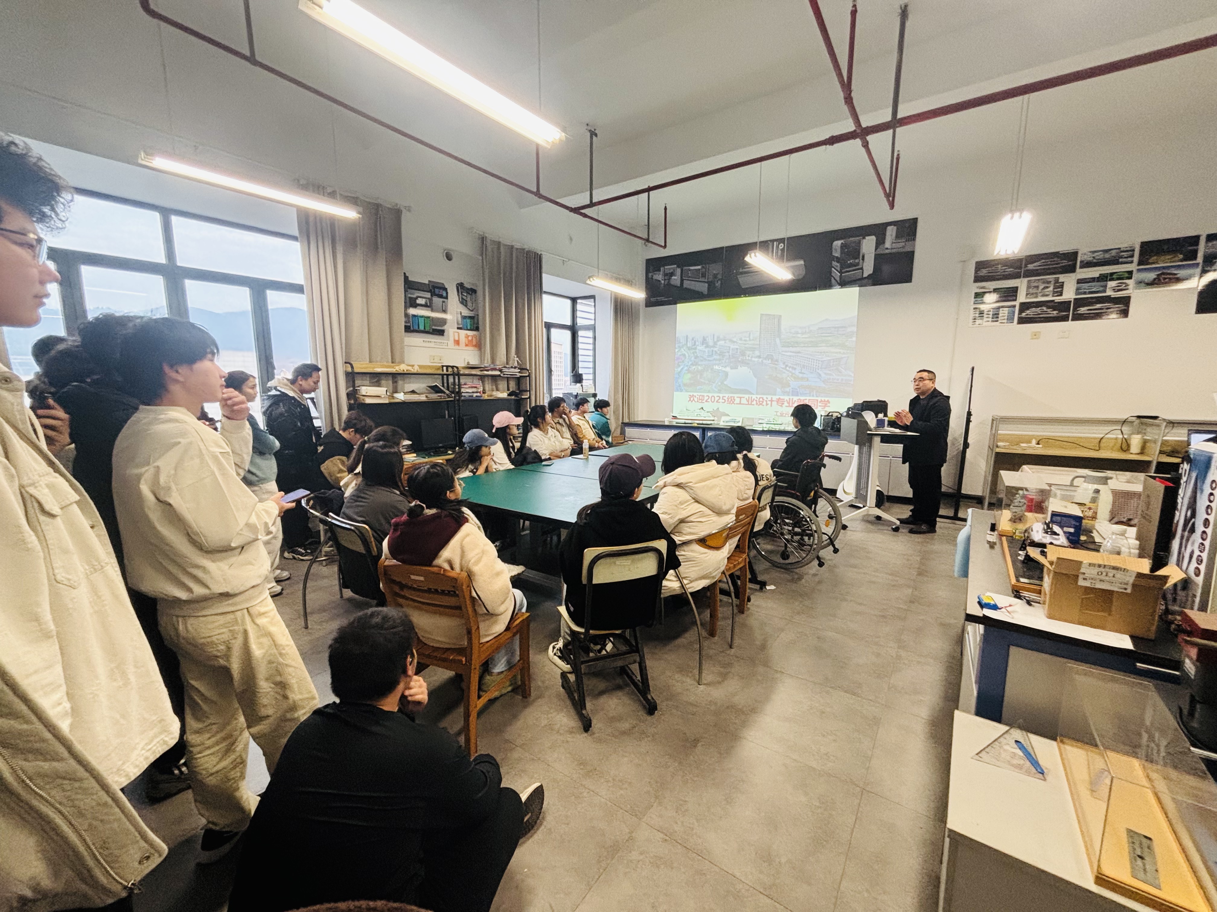 为助力 25 级工业设计专业新生深化专业认知、明晰学业规划,12月19 日下午,机械工程学院组织该专业大一新生走进专业实验室与工作室,开展沉浸式参观学习活动。活动由工业设计专业教师刘李明老师带队,全程为新生细致讲解专业设施与实践应用要点,25 级工业设计专业全体新生到场参与。
