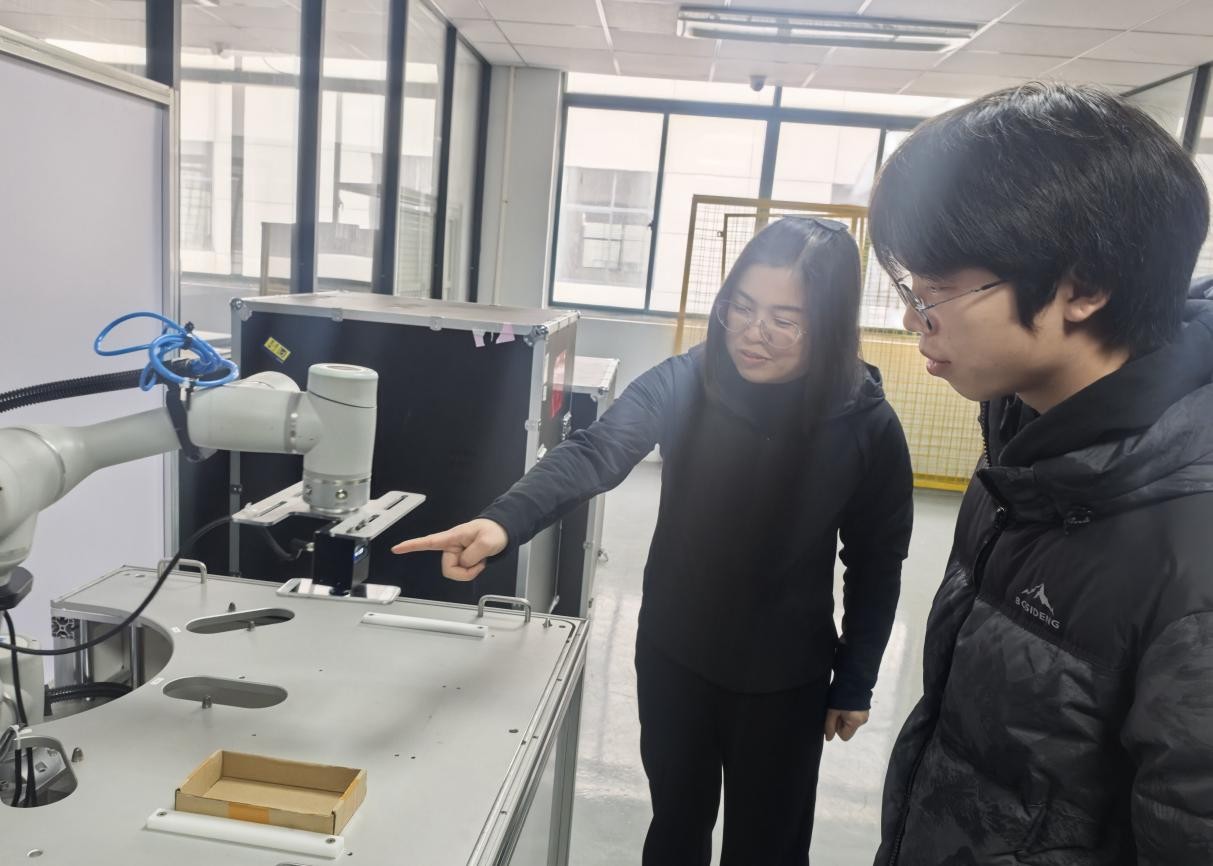 1月25日,队员周铂堰与谢嘉旻旻在无锡汉瓦真空技术有限公司车间协作实践。周铂堰亲身参与真空吸具模块的组装调试,深入理解精密装配对清洁度、顺序和力矩的苛刻要求;谢嘉旻旻系统参观了从机加到总装的全产线,将理论知识与实际环节一一对照。