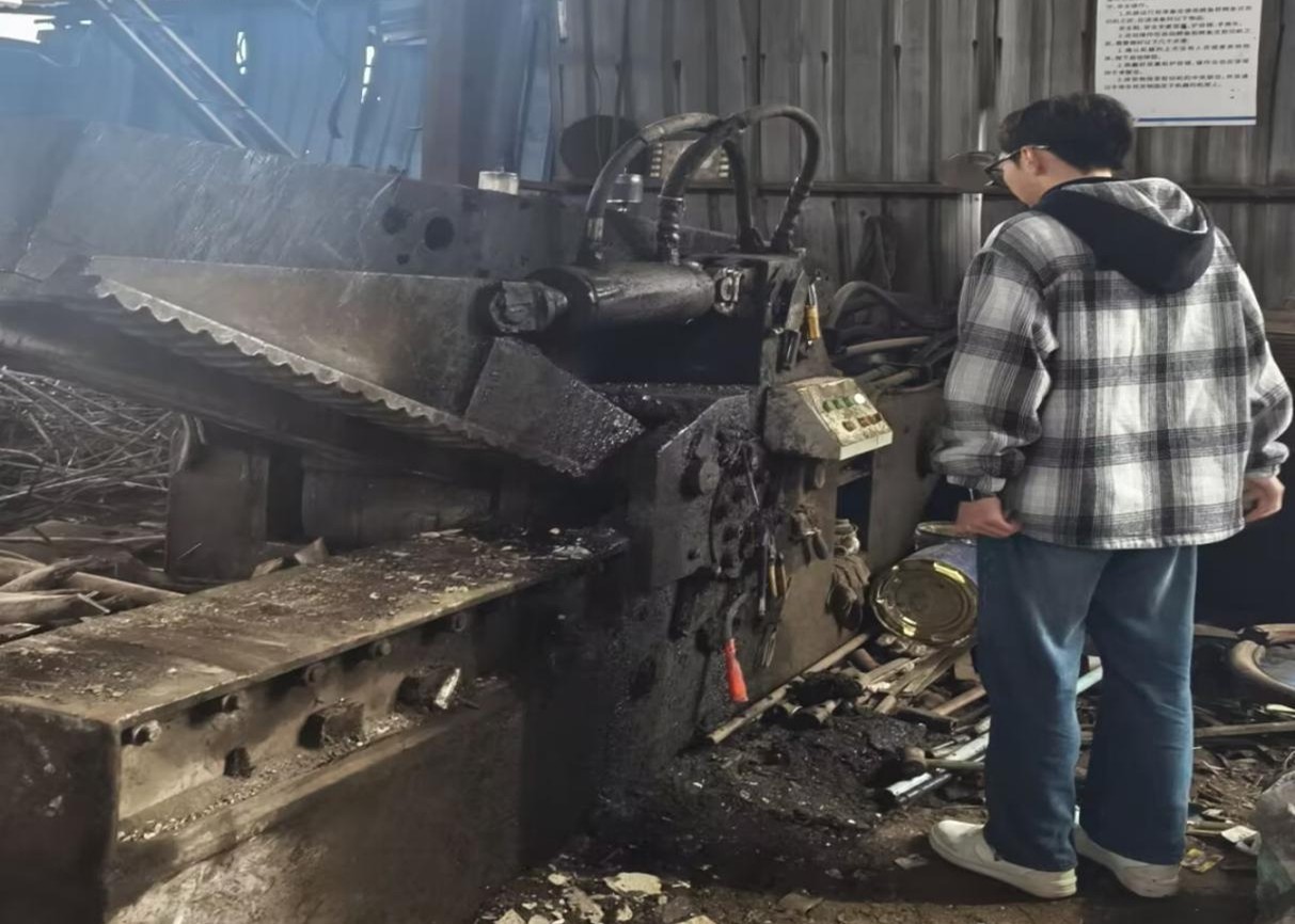 图为熊博意同学研究“鳄鱼剪”重型剪切设备