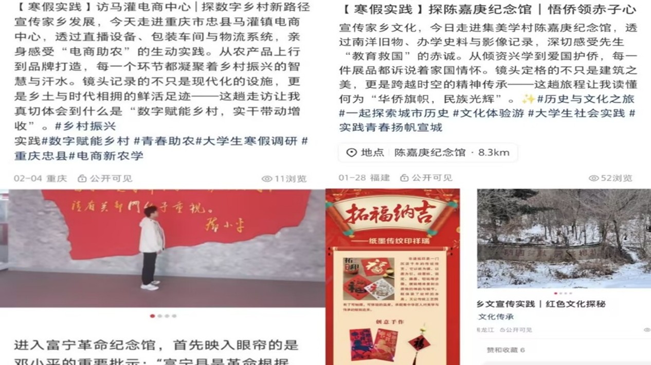 在深入实地探访家乡文化的同时,实践团成员积极拓展宣传渠道,借助小红书、抖音等新媒体平台同步发布实践见闻。他们通过精心编辑的图文笔记与短视频,以青年视角记录红色场馆的庄重氛围、非遗技艺的匠心传承。
