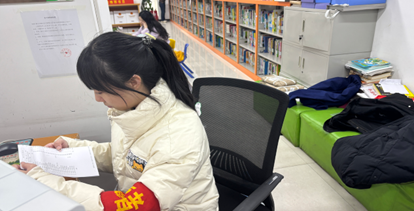 2月8日,志愿者刘奕彤在社区图书馆忙碌,负责图书借还登记、整理上架、借阅引导咨询及阅览室秩序维护。她耐心将归还图书按编号归位,主动为居民提供指引,保障图书馆日常服务有序开展。谈及本次志愿服务的心得体会,刘奕彤表示:“以前我只是这里的读者,今天换了个身份,才更懂这份工作的重量。”她表示,今后将继续积极参与志愿服务,用实际行动传递温暖,为社区文化建设贡献自己的一份力量。