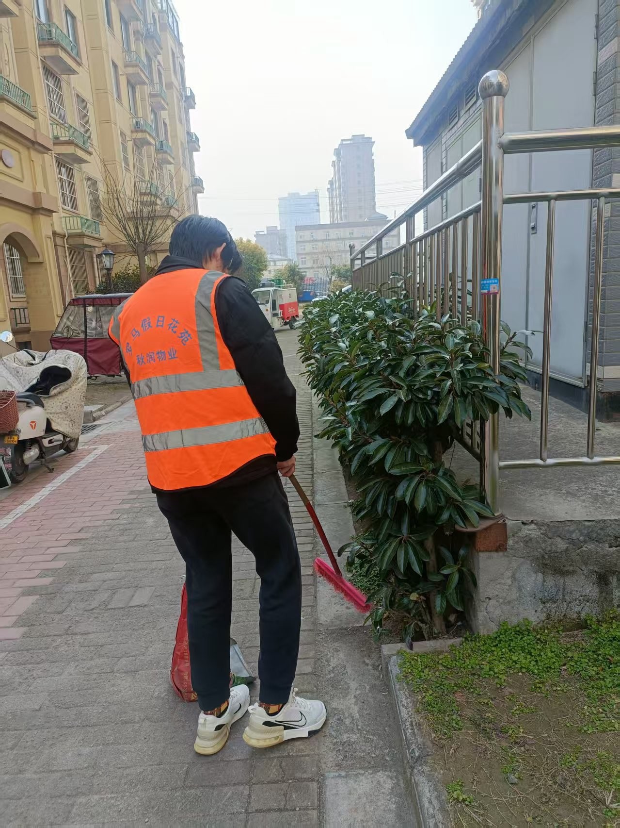 同日,队员杨书凡走入社区,整理摆放书籍,队员唐宇翔在成都龙泉驿区皇冠国际社区积极投入环境卫生清洁服务。他手持清洁工具,认真清扫路面垃圾,仔细捡拾绿化带中的隐藏杂物,用辛勤的汗水切实美化了社区环境。