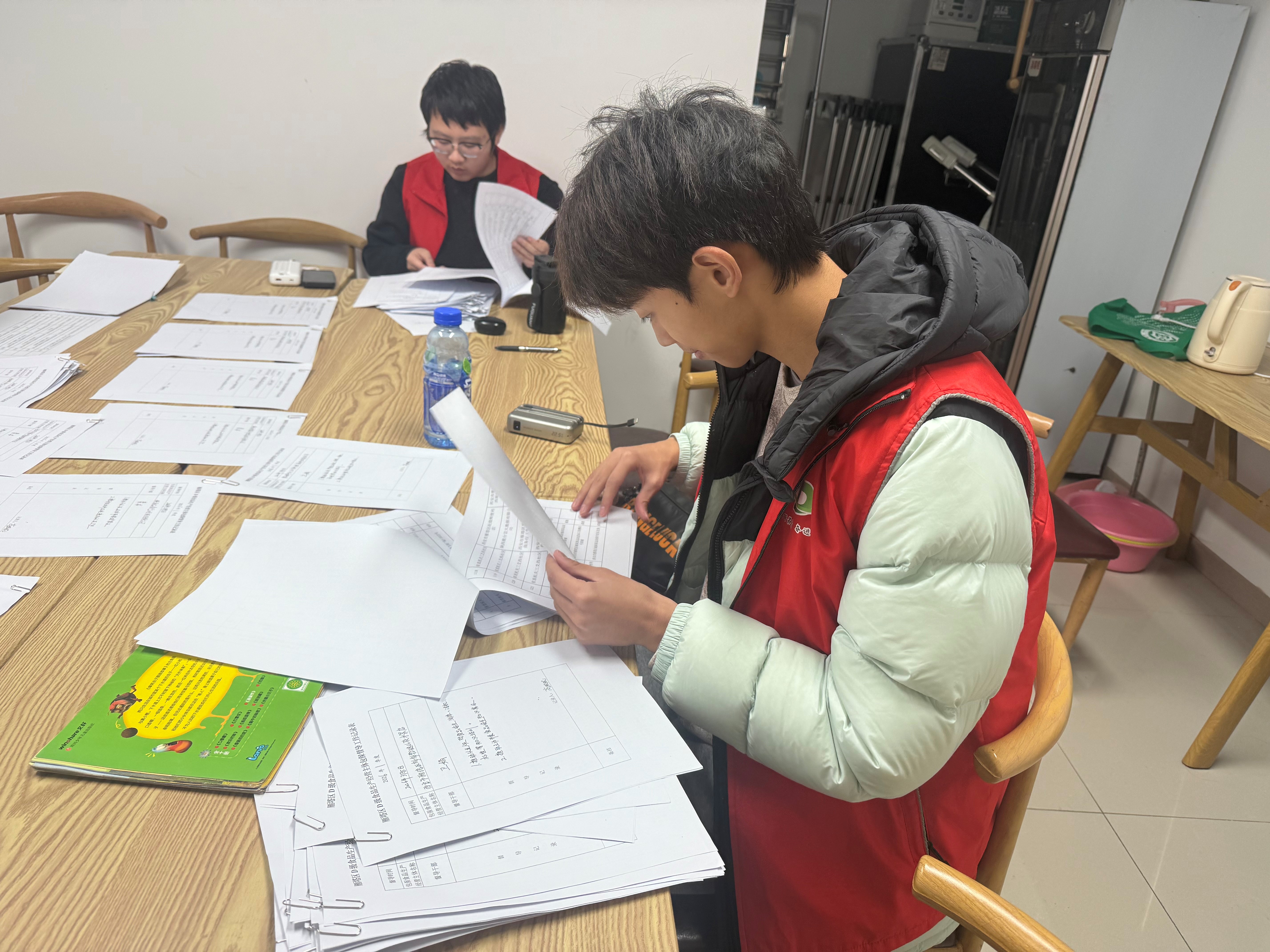 2月10日,实践团队长穆彦铭同学在西安省直机关三爻西社区开启了首日服务。上午,他化身“学业辅导员”,耐心为社区孩子们辅导功课,细致讲解题目疑点,用知识传递关怀。下午,他迅速转换角色,主动协助社区工作人员整理、分类与归档各类文件,认真核对信息,提升了社区办公效率。随后,他又前往辖区商场,逐一检查食品经营户的营业执照、许可证等资质,仔细核对信息、排查潜在隐患,以实际行动守护社区居民“舌尖上的安全”,展现了严谨负责的态度。