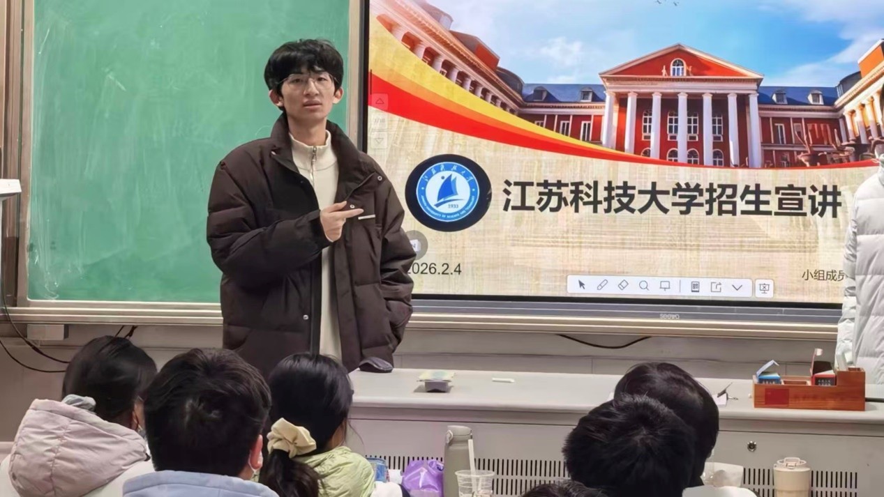 宣讲不止于单向输出。在山东省平度第一中学,赵方圆与学弟学妹们围绕“如何选择专业”、“高三如何高效备考”等话题展开了热烈讨论。在盐城市第一中学,郑曙杭以自己参与学科竞赛的经历,鼓励大家勇于探索、敢于创新。队员们分享的实战经验与心路历程,如同一剂剂“定心丸”,有效缓解了备考焦虑,也让“江苏科技大学机械工程学院”这个名字变得具体而亲切。