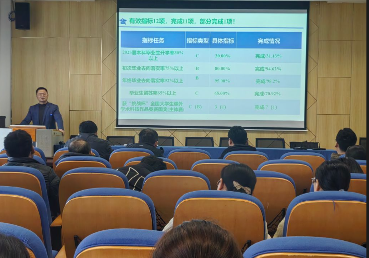 党委书记翟纯纯表示,过去的一年是凝心聚力、真抓实干的一年,学院各项工作稳中有进、亮点纷呈。2026年是“十五五”规划编制的关键之年,学院党委将进一步发挥把方向、管大局、保落实的关键作用,重点落地三项工作:扎实推荐“基础夯实提升年”建设,全面加强学院治理,确保学院高质量发展行稳致远;深化党建工作品牌建设,提高党建赋能中心工作发展的能力,实现党建业务深度融合;强化组织功能,高质量编制学院“十五五”发展规划。