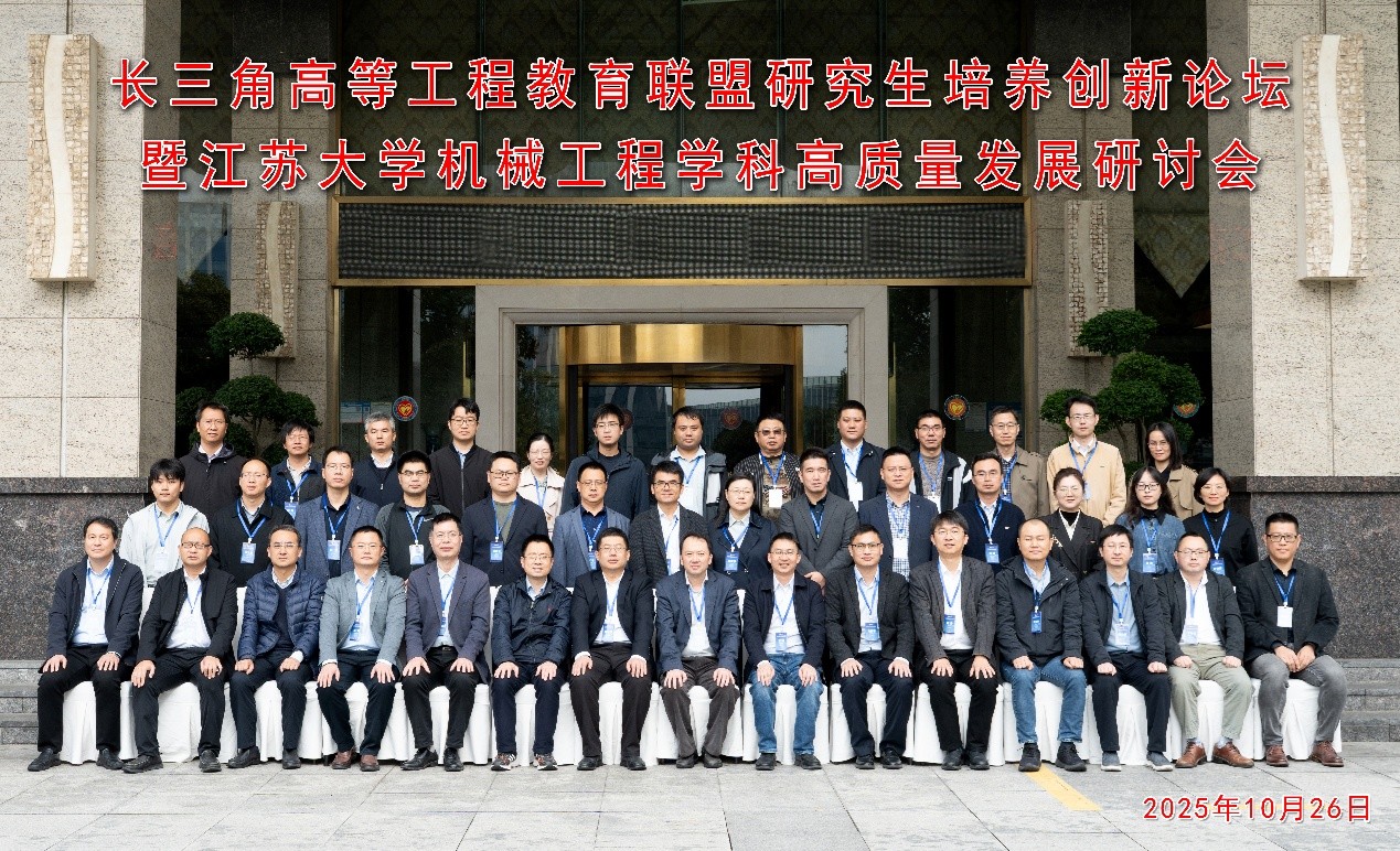 2025年10月26日,“长三角高等工程教育联盟研究生培养创新论坛暨江苏大学机械工程学科高质量发展研讨会”举办,我院院长张建教授、副院长李磊教授,学科办主任周元凯、副主任刘勇代表学院参会,并参与长三角高等工程教育领域交流。
