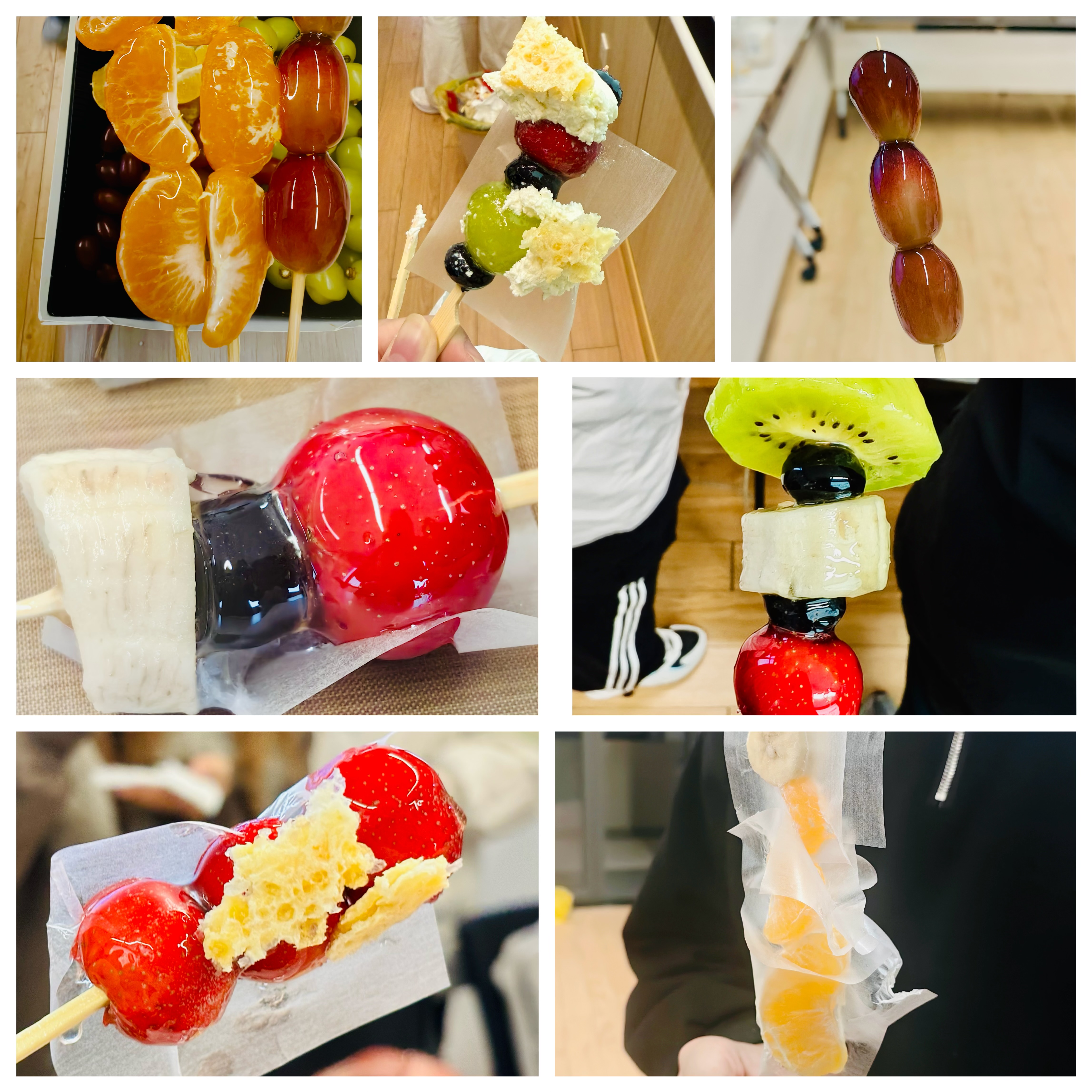 同学们自发分组、分工协作:处理水果时,去核去蒂的细致操作培养着耐心与专注力,色彩搭配的巧思则鼓励着创造力表达;熬制糖浆时,对火候的把控与糖液状态的观察,教会大家在等待中沉淀心态;创新装饰时,酸奶淋涂、奶皮子贴合的尝试,让同学们在突破常规中收获自信心。每一个步骤都暗藏心理教育巧思,让动手实践成为无声的“心理课堂”。