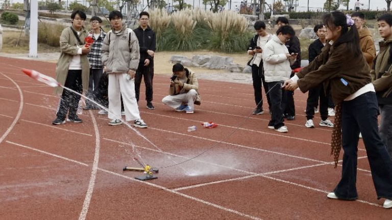 2025年11月23日下午,“箭指苍穹,逐梦蓝天”水火箭趣味活动在机械工程学院“韶华里”一站式社区举办。同学们在亲手制作与发射水火箭的过程中,充分领略科学探索的乐趣。