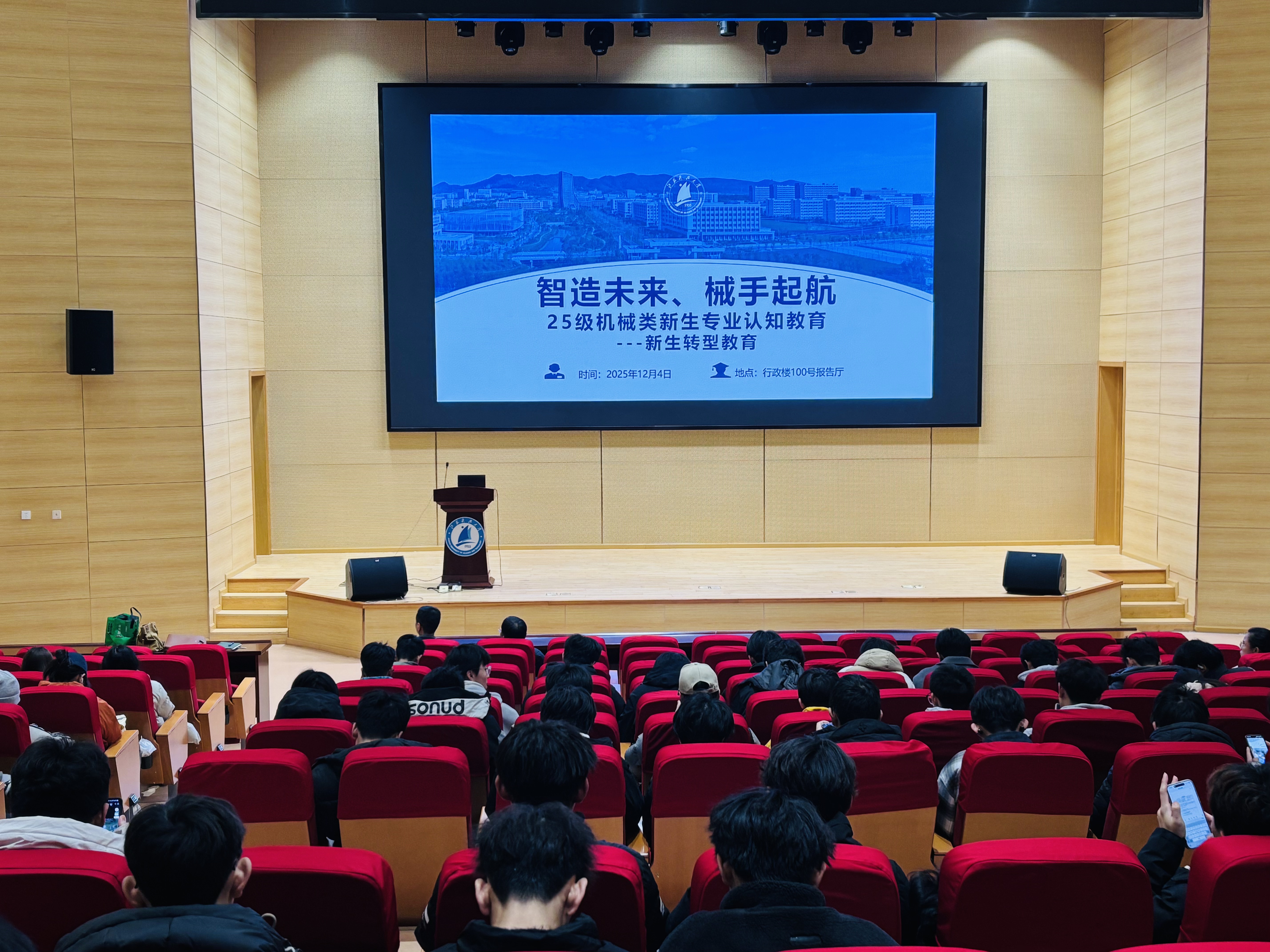 为帮助2025级新生深入了解学院办学特色与专业发展前景,明晰学习目标、规划学业生涯,顺利实现从高中到大学的角色转型,12月4日,机械工程学院于行政楼100号报告厅举办“智造未来、‘械’手起航”主题专业认知教育活动。本次活动特邀机械制造及其自动化专业负责人何强老师、机械电子工程专业负责人李冲老师、智能制造工程专业负责人孙志莹老师担任主讲嘉宾,2025级全体机械类新生到场参加,活动由学院辅导员王洁老师主持。
